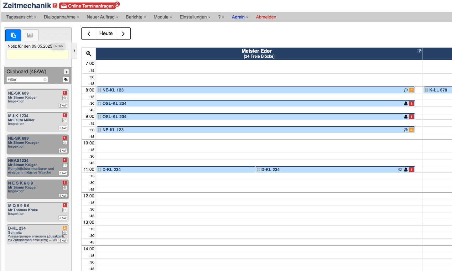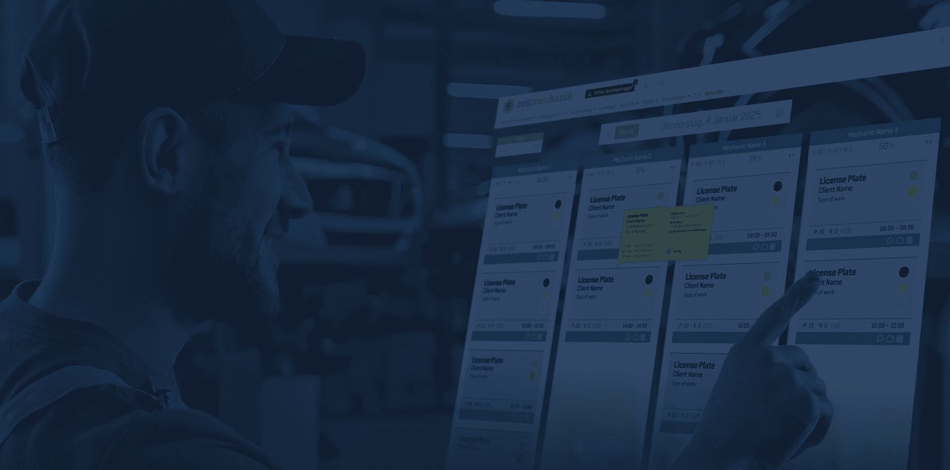 Zeitmechanik digitalisiert alle wesentlichen Prozesse, die du und deine Mitarbeiter für eine moderne Werkstatt brauchen. Mit unserer Plattform arbeitet ihr alle mit nur einem einzigen System, das maßgeschneidert auf eure Werkstatt ist.