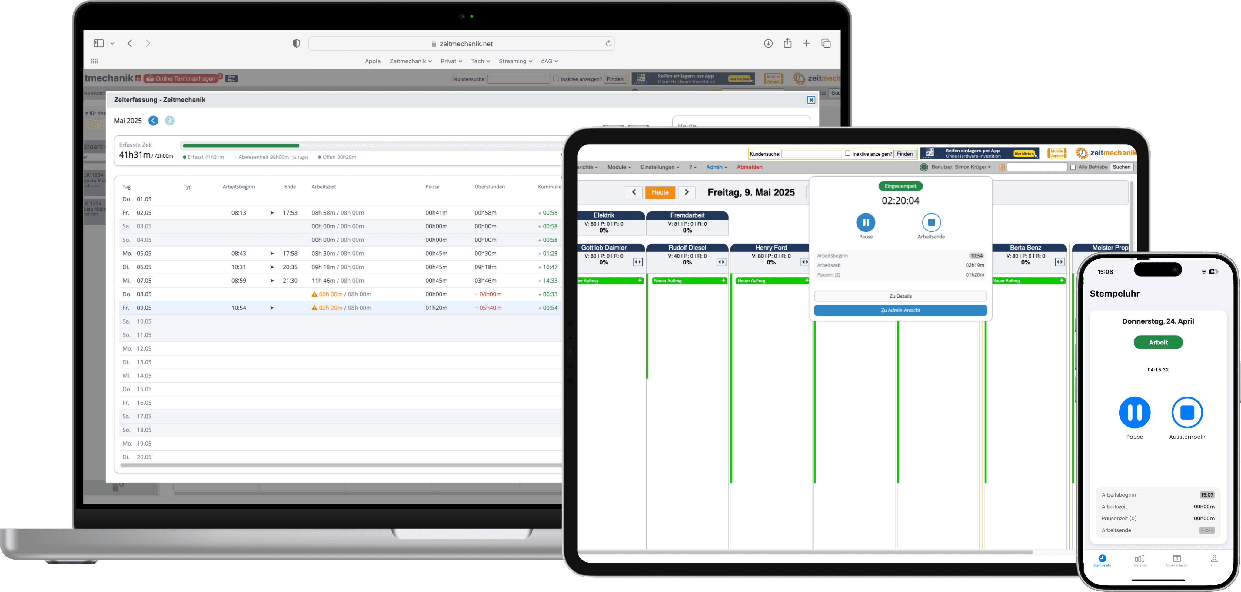 Die Zeiterfassung für deine Werkstatt. Alles in einem System.